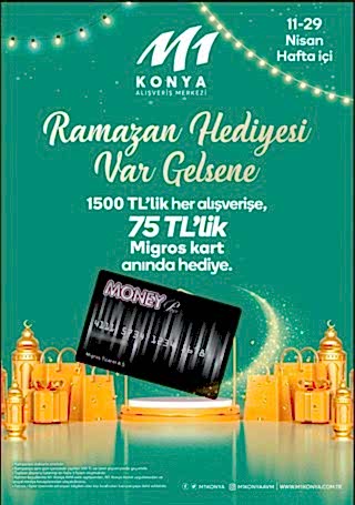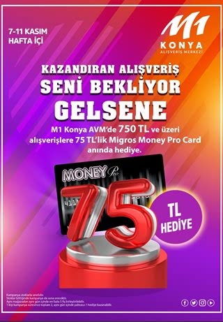 M1 Konya Alışveriş Merkezi, 15 yıldan uzun süredir geniş ve rahat açık otoparkıyla birlikte çeşitli beğenilere ve ihtiyaçlara hitap eden 49.000 m2 kiralanabilir alana sahip modern bir alışveriş merkezidir. Tek katlı mimarisi ve çeşitli mağazalarıyla rahat ve keyifli alışveriş imkanı sunmaktadır. Ayrıca yıl boyunca düzenlenen etkinlikler ve kampanyalarla eğlenceli ve avantajlı seçenekler sunan M1 Konya Alışveriş Merkezi, farklı bir alışveriş deneyimi sunmaktadır.Tamer Yılmaz
